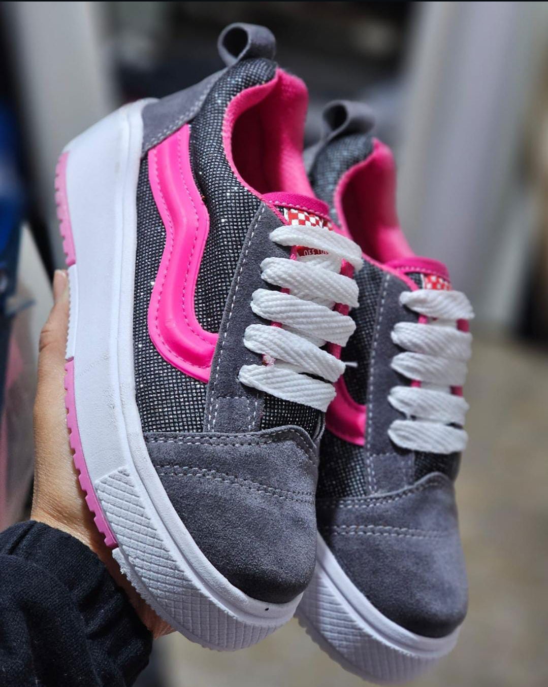 Gris y fucsia con brillos