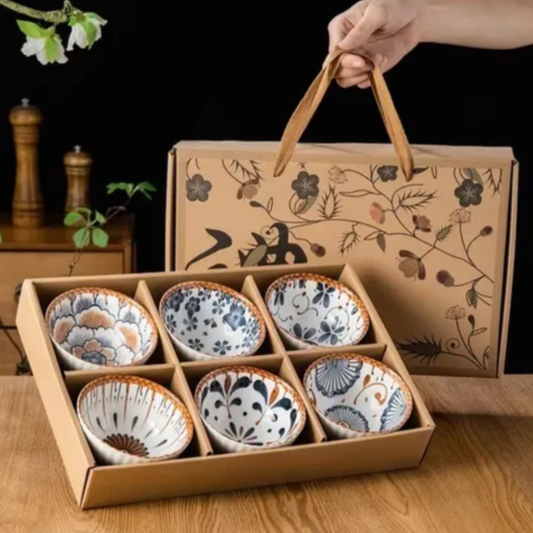 Juego de 6 bowls de porcelana con diseños estampados.