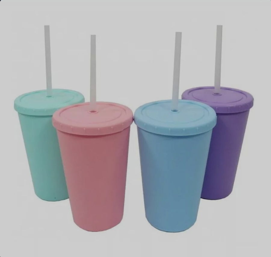 Vaso con tapa y sorbete pastel x 1 unidad