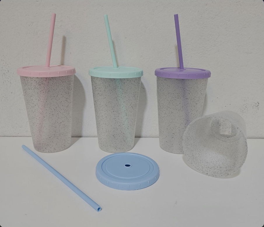 Vaso con tapa y sorbete glitters x 4 unidades