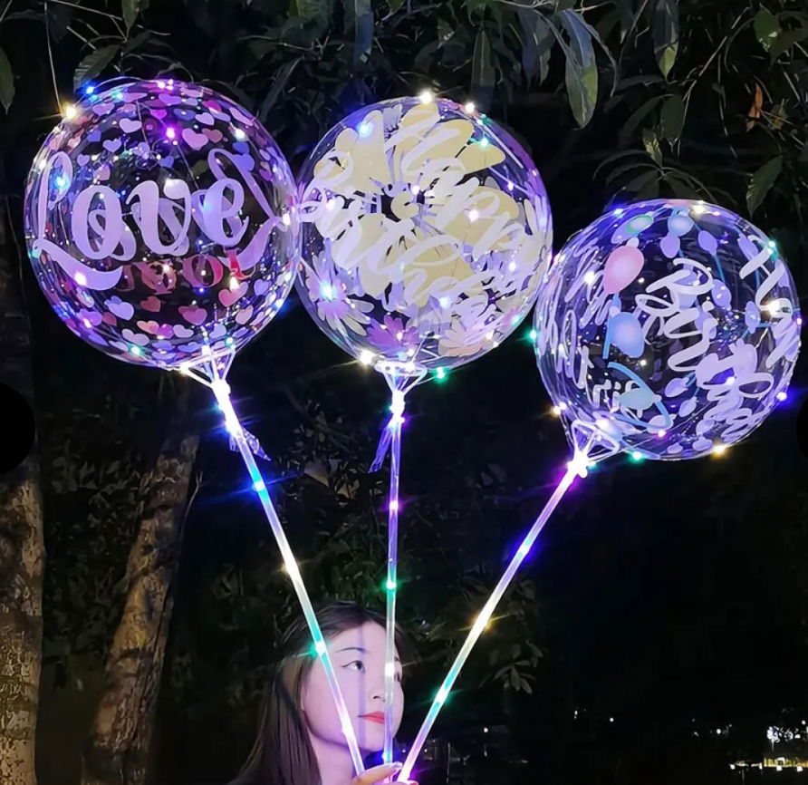 Pack x 10 - GLOBO FRASES Y DIBUJOS CON VARILLA Y LUCES LED