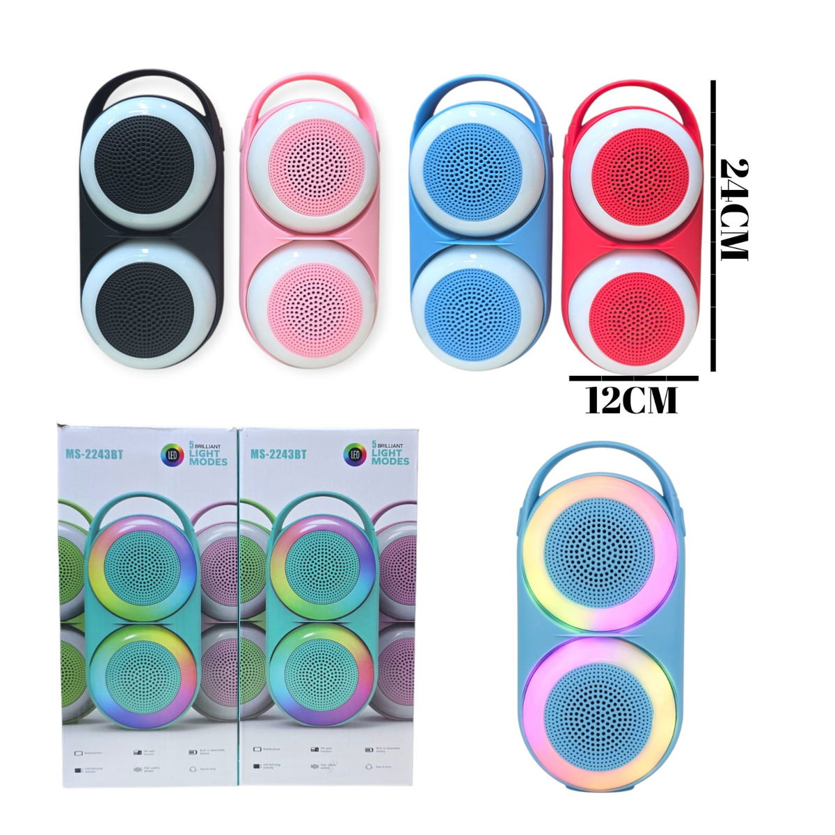 PARLANTE BLUETOOTH 2X3 PULGADAS C/LUCES
