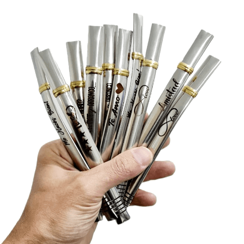 Pack x 6 BOMBILLA CHATA ACERO DIJE GRABADA