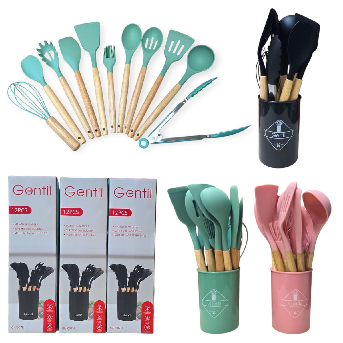 SET X12 UTENSILIOS COCINA MANO MADERA GENTIL