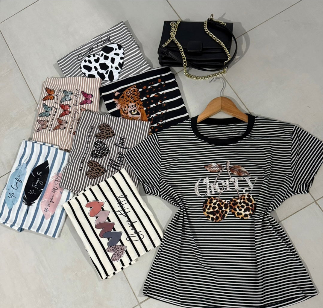 Remera rayada con estampa T.unico