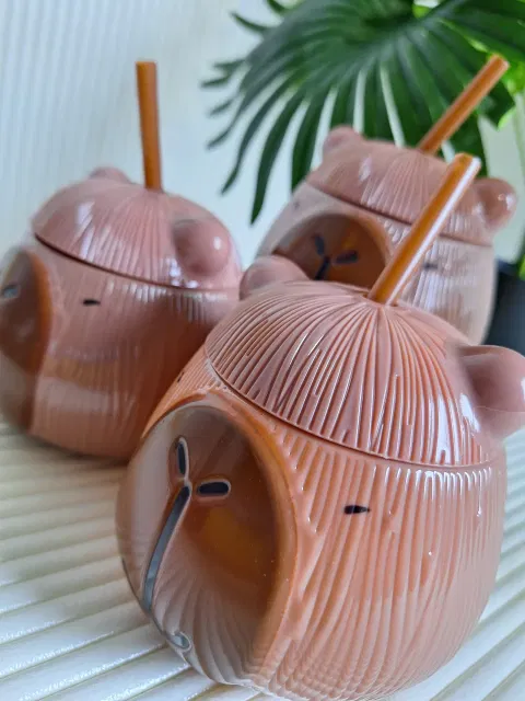 VASO CABEZA CAPYBARA CON TAPA Y SORBETE