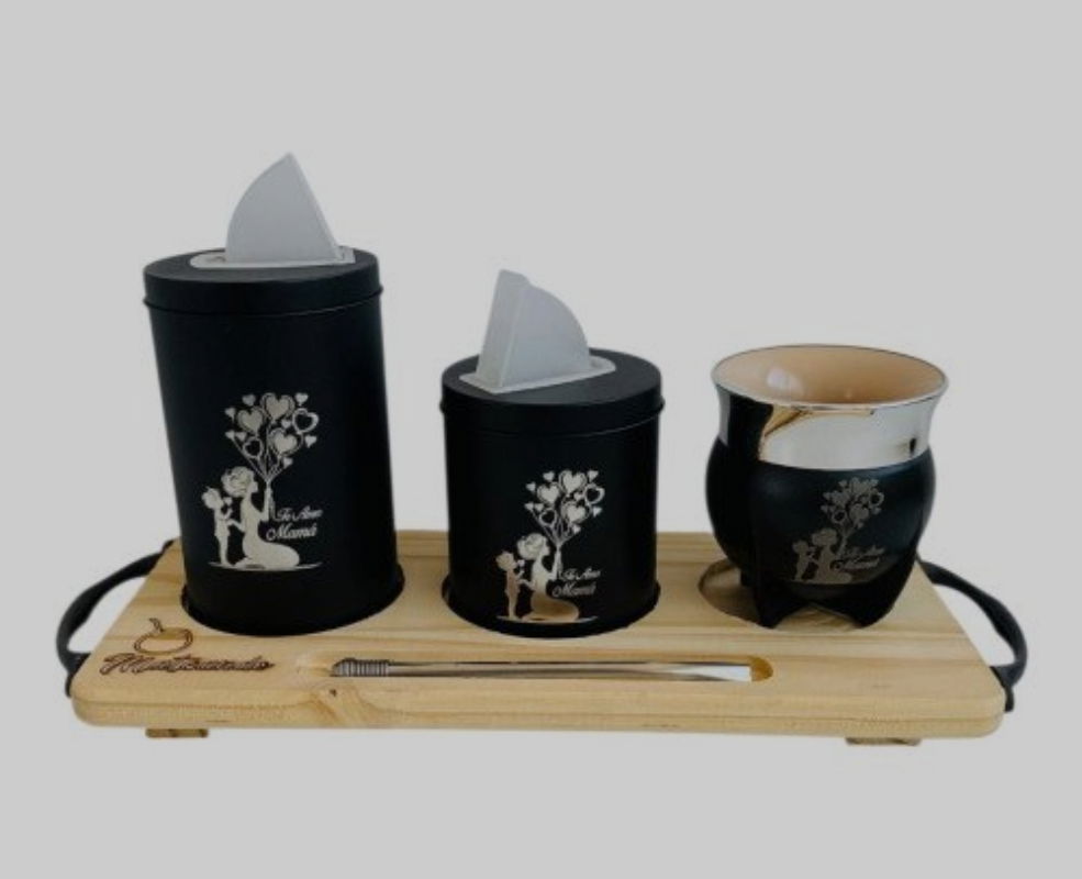 Tabla matera ginebra(yerbera+ azucarera + mate ginebra + bombilla + tabla)